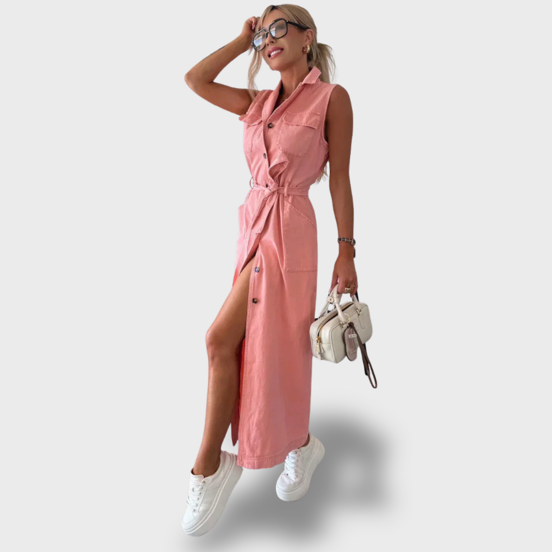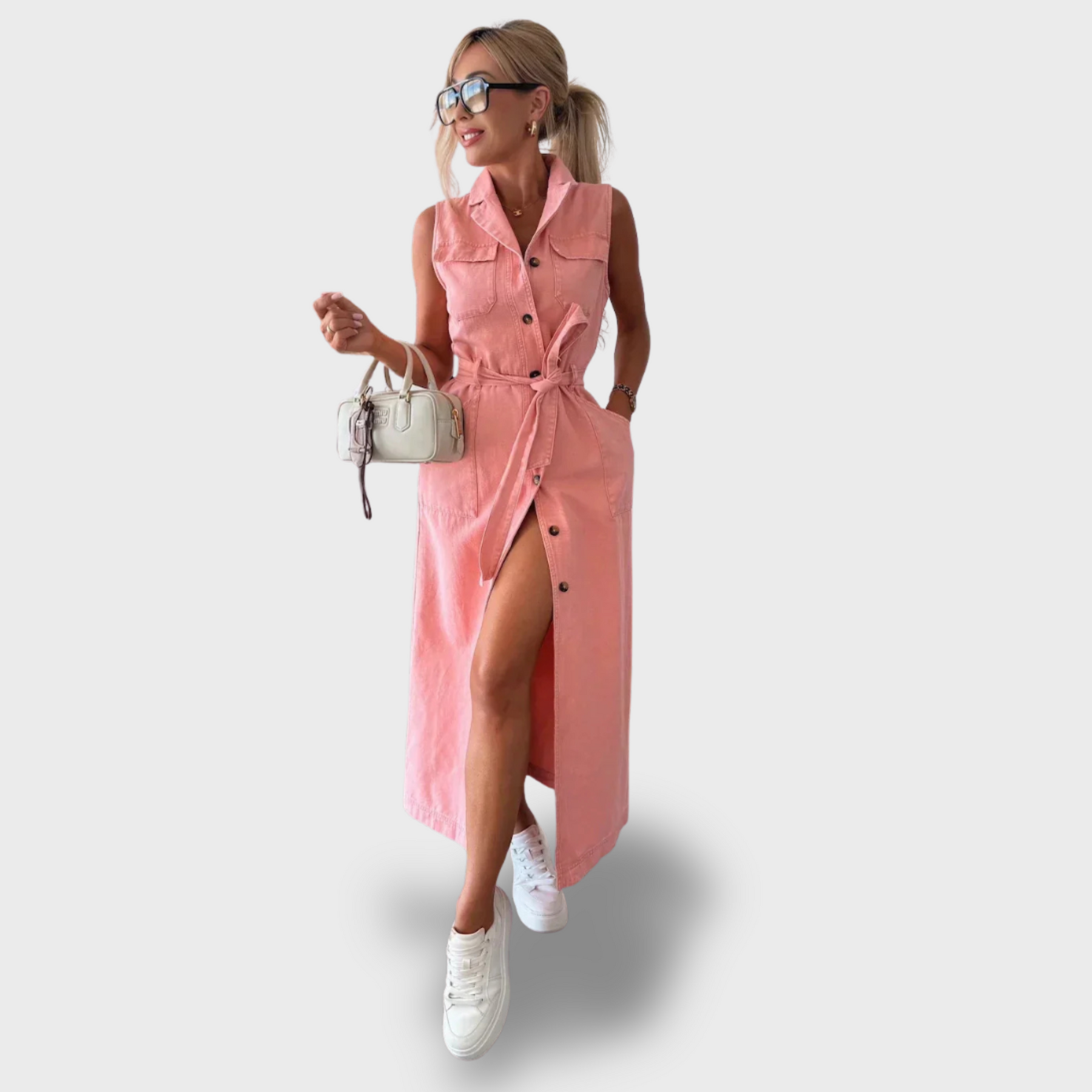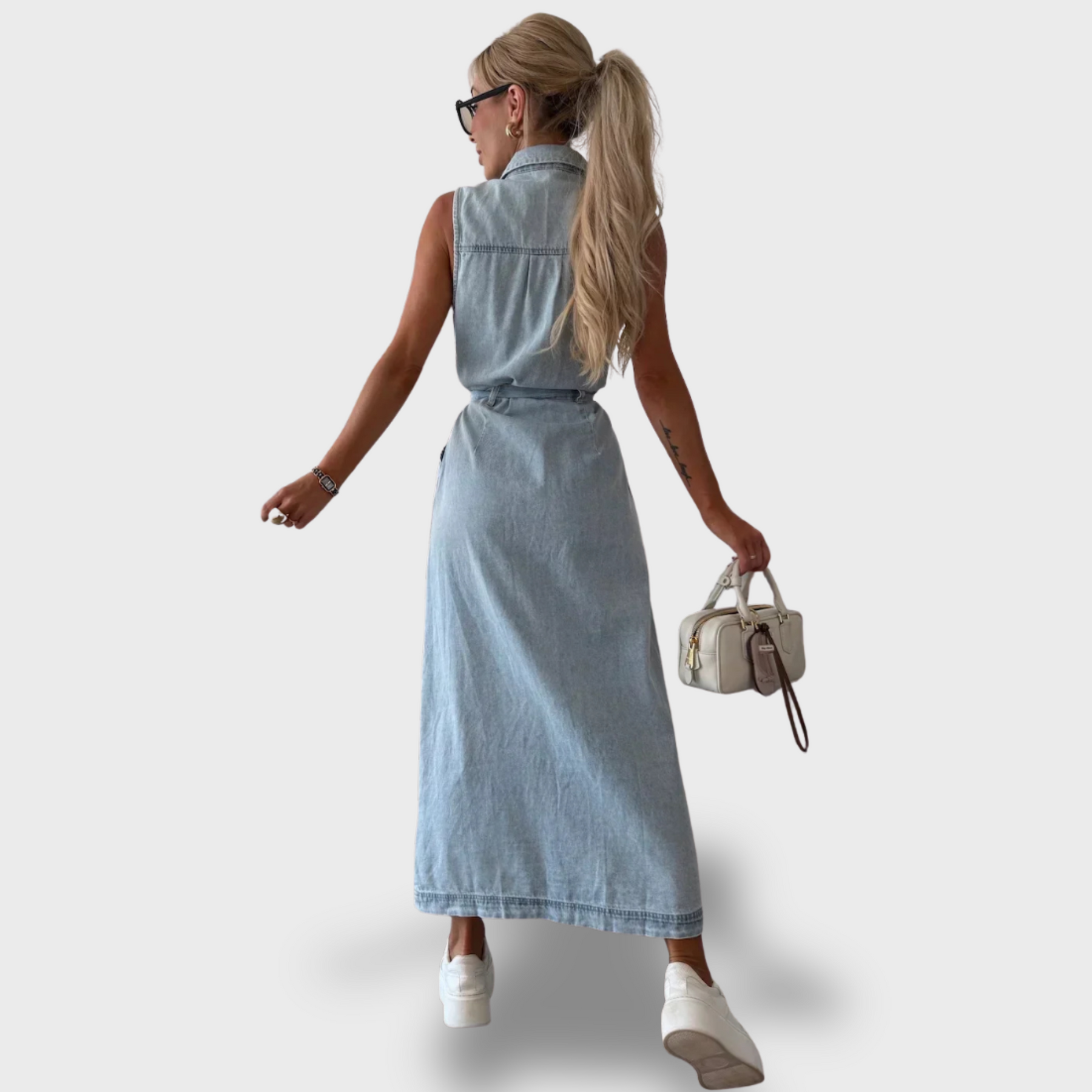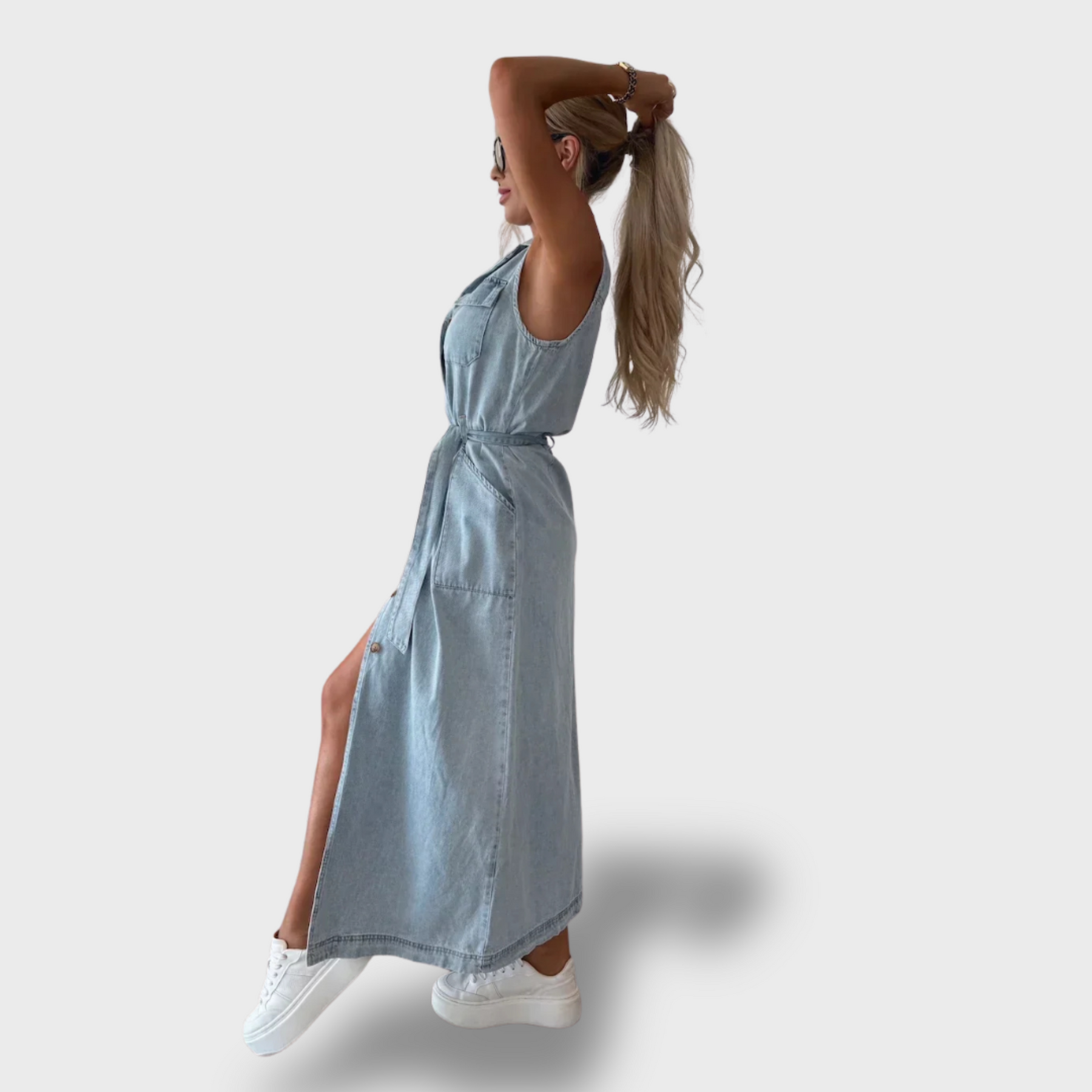 Jsou vyrobeny z jemného a prodyšného denimu, mají volný střih bez rukávů a zdobí je rafinované zapínání na knoflíky. Jemné detaily a nadčasový vzhled z nich dělají dokonalý kousek pro každou příležitost – od ležérního dne až po elegantní chvíle.